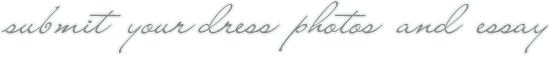 10) Contestants may submit a mini-essay description of their dress (no more than 150 words). This optional description can include the dress style, fabric, details not visible by photograph, etc. Please see these past examples for more ideas. Designer names are not allowed in this description. If the dress was handmade by a friend or by a relative, mention of that is acceptable. These descriptions are not to be submitted with the entry image -- but rather to the essay editors. This year you can submit your essays with your photos(s) at the submit page. After editing, the descriptions will then be paired with your official image for the judging.